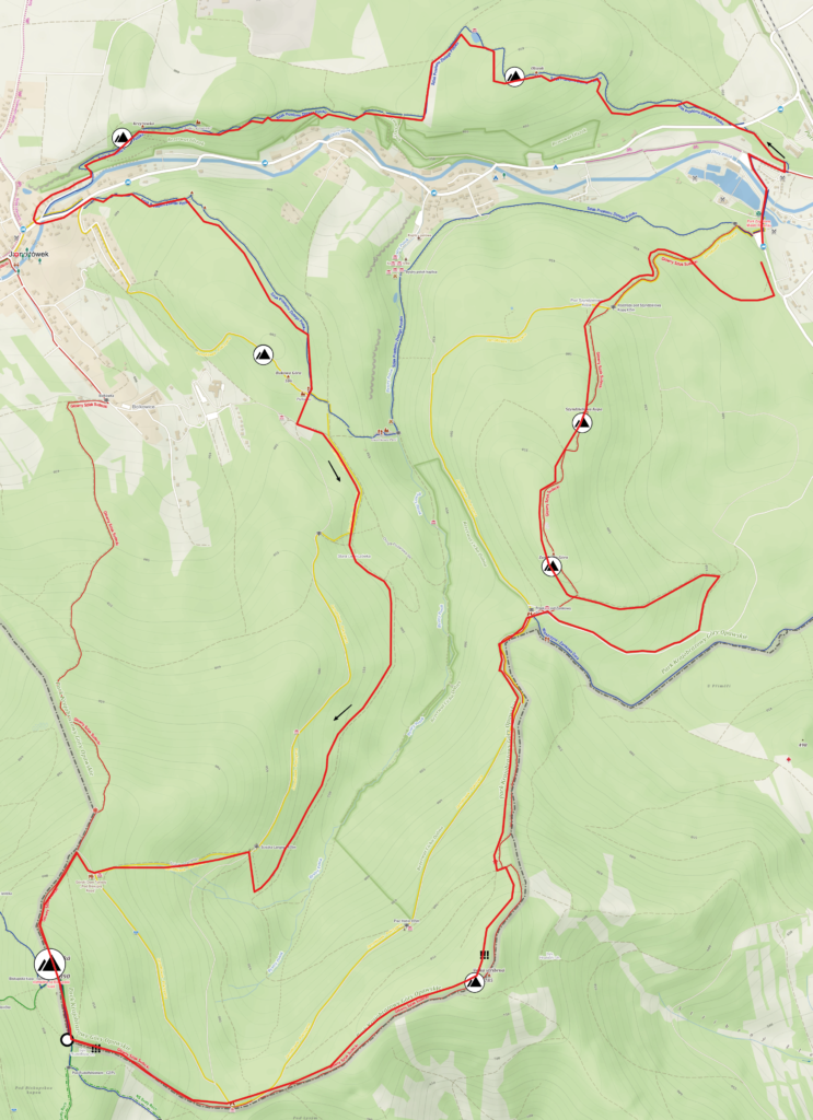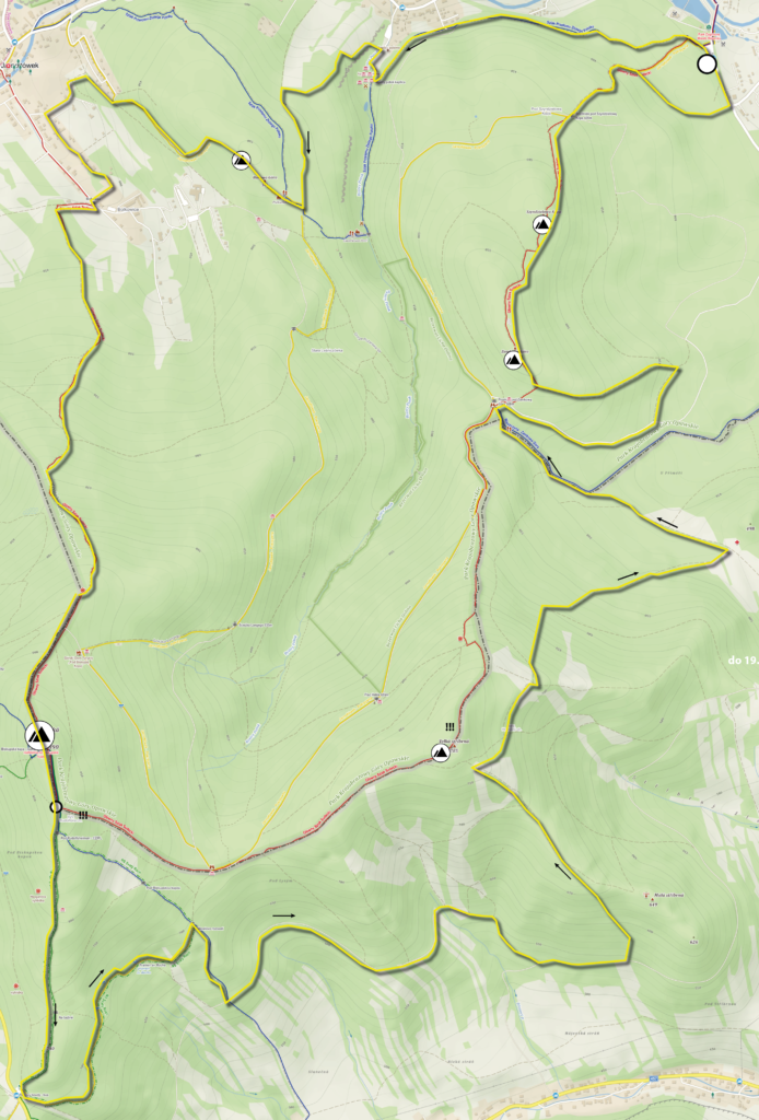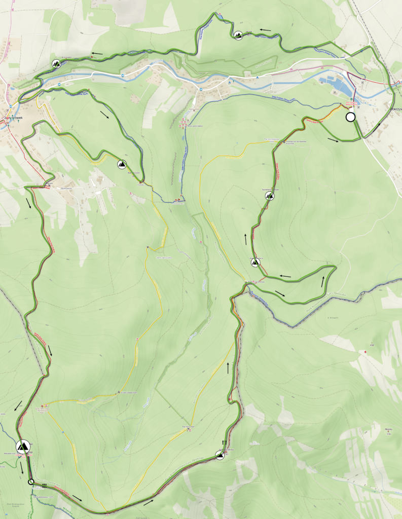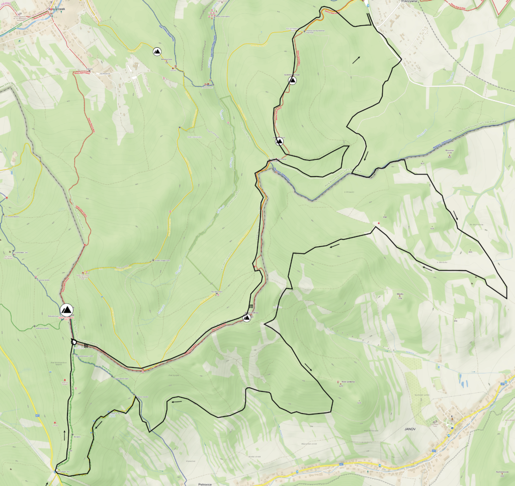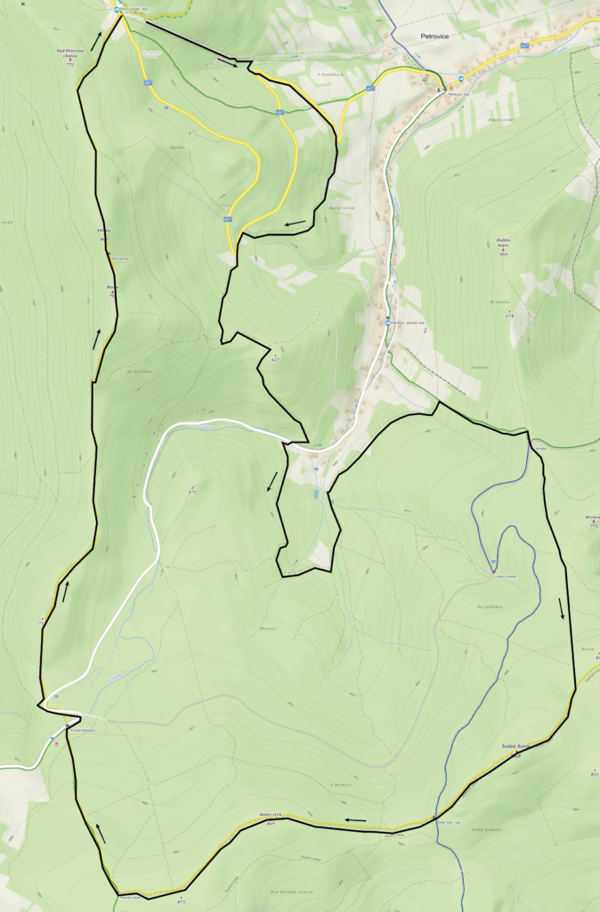 Na czas treningów zalecamy podzielenie Petrovickiej Pętli na dwie części, pierwszą rozpoczynającą i kończącą się w Pokrzywnej o długości 24 km (+/- 1250 m) i drugą rozpoczynającą i kończącą się na parkingu w Petrovych Boudach o długości 15 km (+/- 240 m)